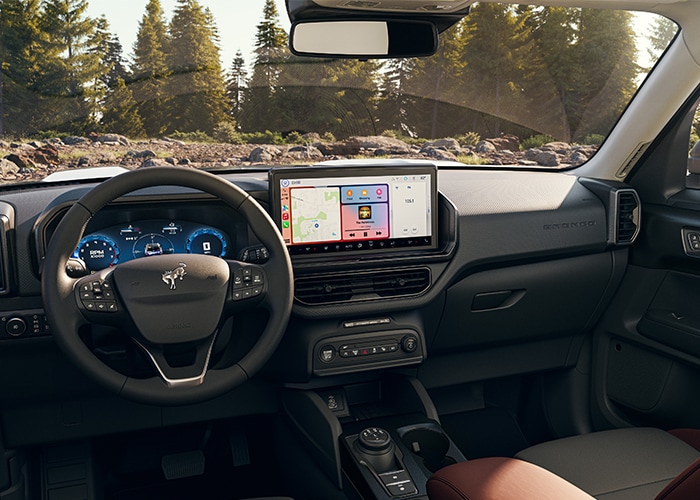 The cabin of the 2026 Bronco Sport seamlessly blends rugged functionality with modern technology. The standard SYNC 4 system keeps you connected with wireless Apple CarPlay and Android Auto, while available features like the B&O Sound System by Bang & Olufsen transform every drive into an immersive experience.